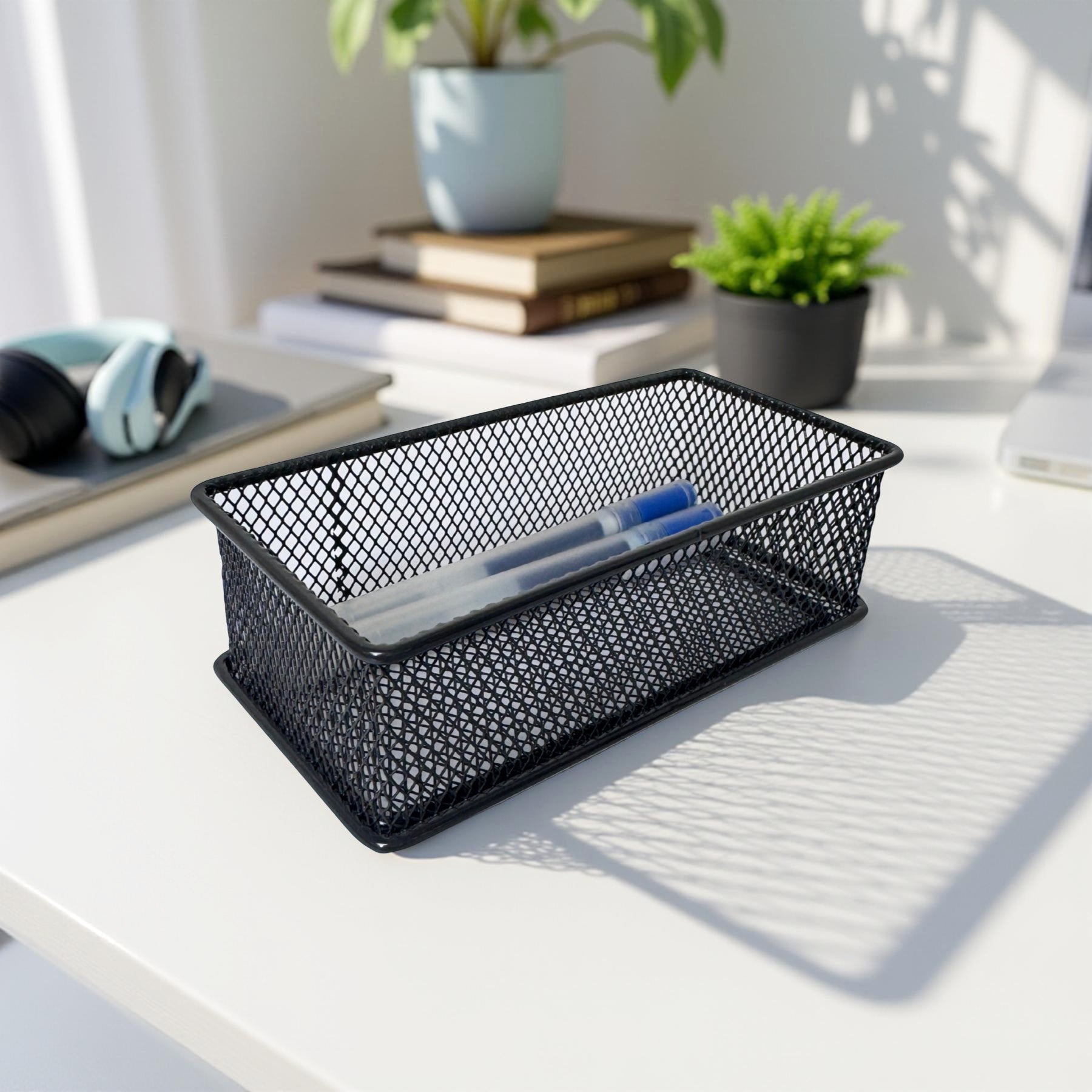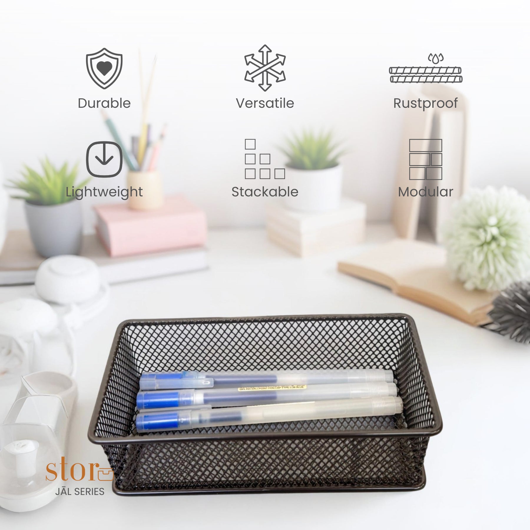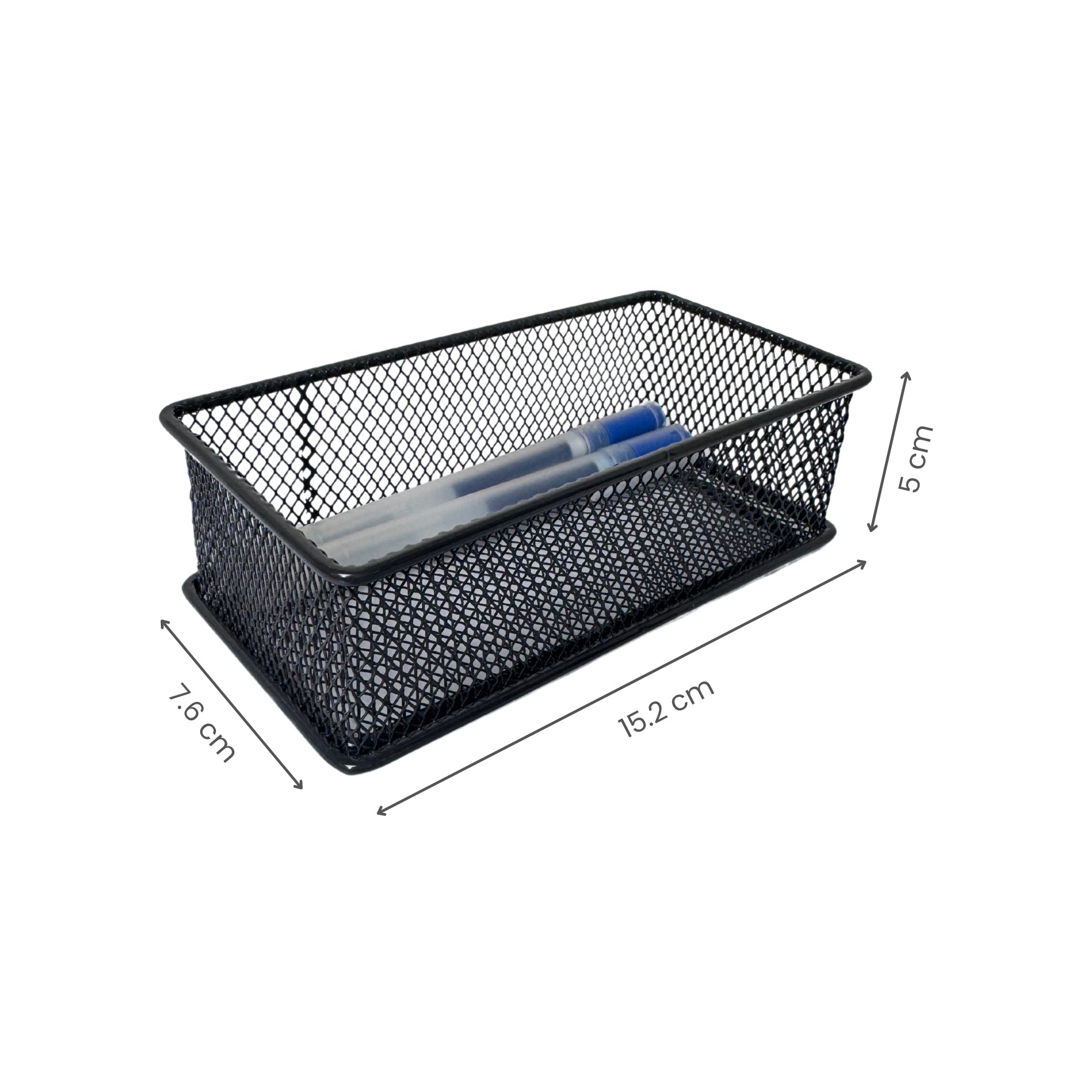 Maximise storage with our Stackable Mesh Storage Organiser, crafted from durable, powder-coated metal for a sleek and sturdy design. Its stackable structure helps optimize space, making it perfect for organizing office supplies, toiletries, kitchen essentials, and more. The open-mesh design ensures visibility and easy access, keeping your space tidy and efficient!