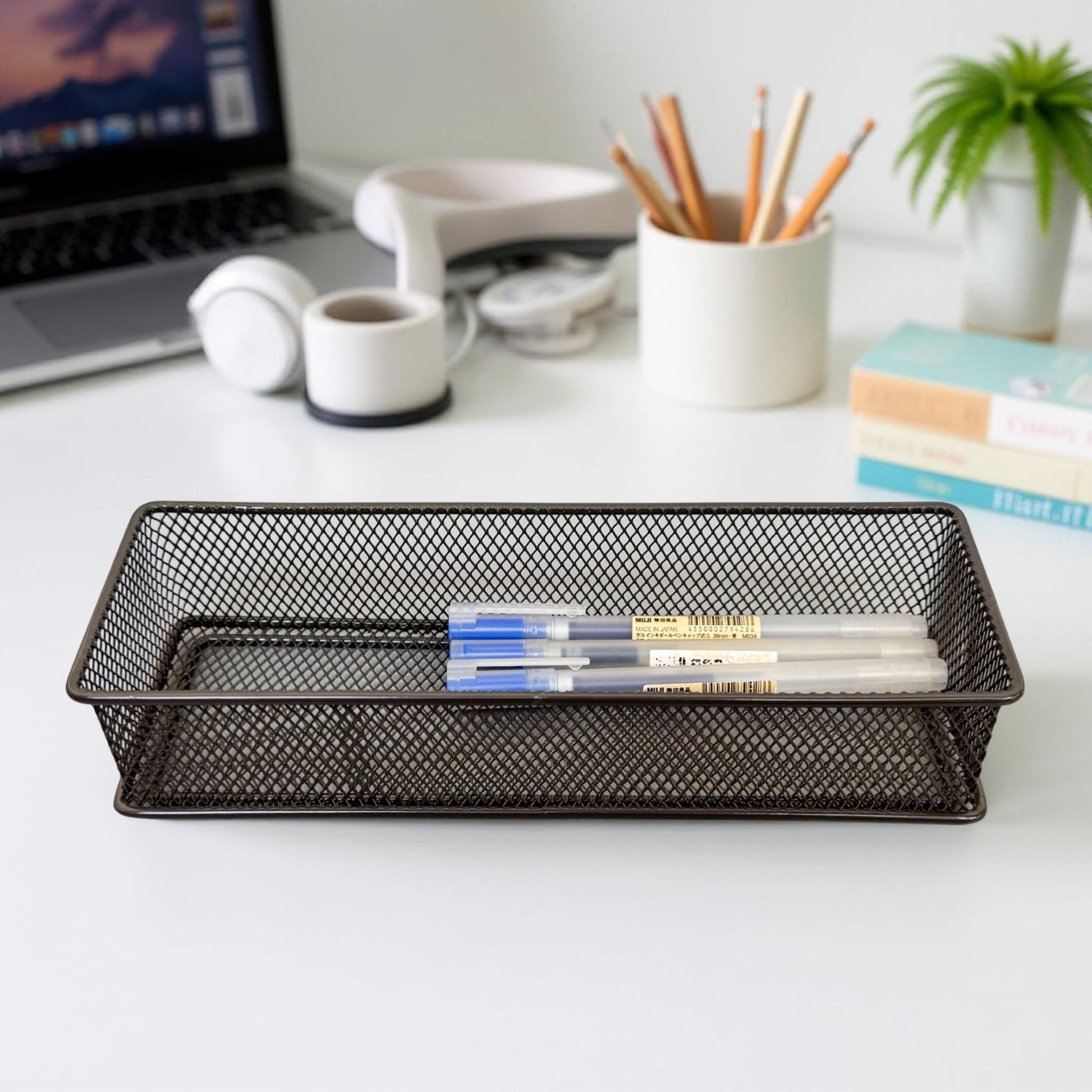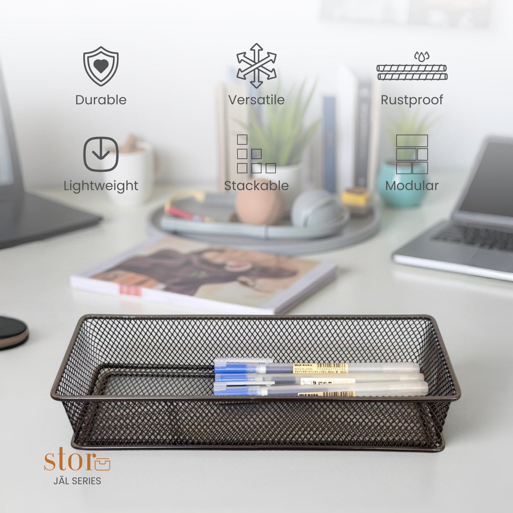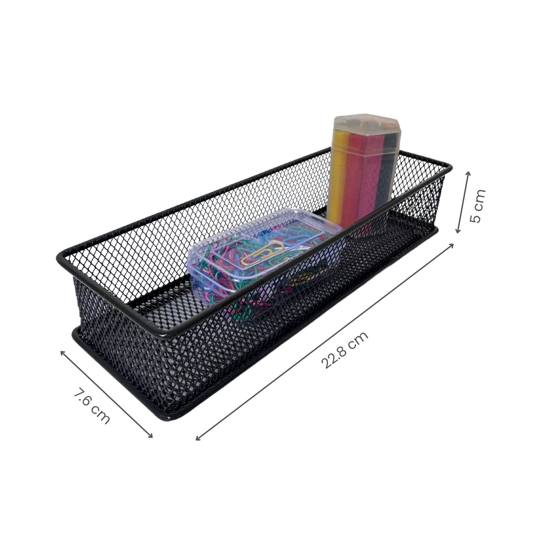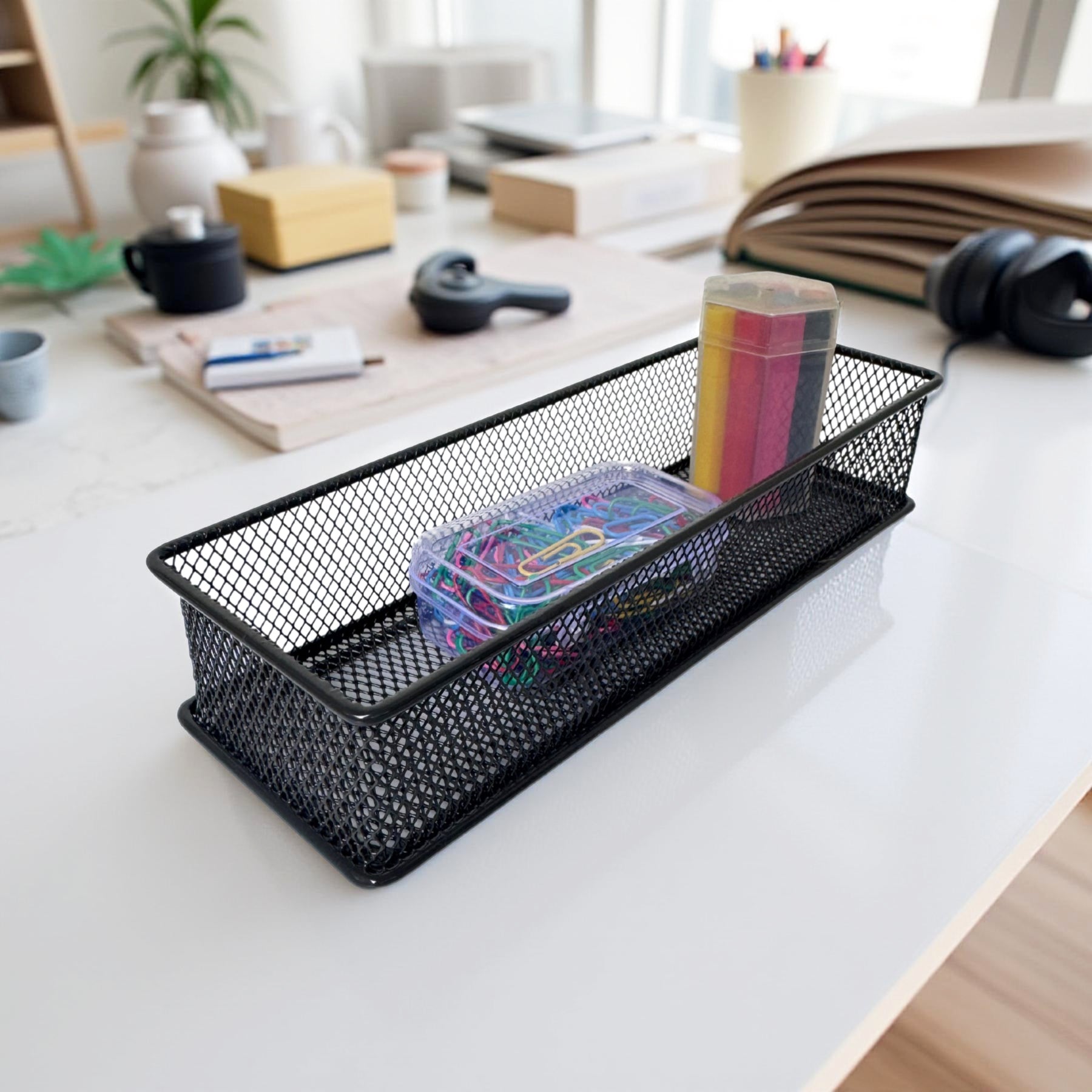 Maximise storage with our Stackable Mesh Storage Organiser, crafted from durable, powder-coated metal for a sleek and sturdy design. Its stackable structure helps optimize space, making it perfect for organizing office supplies, toiletries, kitchen essentials, and more. The open-mesh design ensures visibility and easy access, keeping your space tidy and efficient!