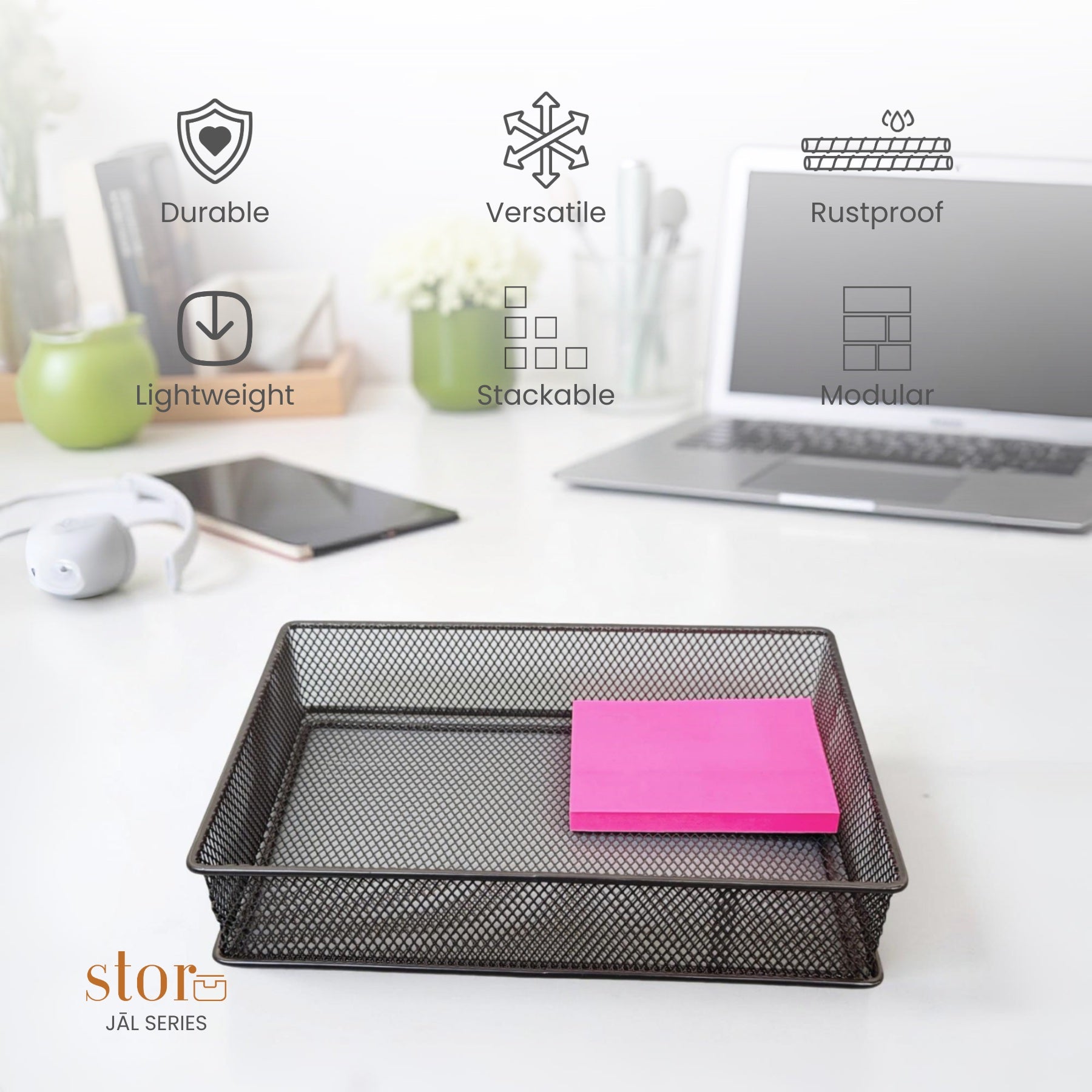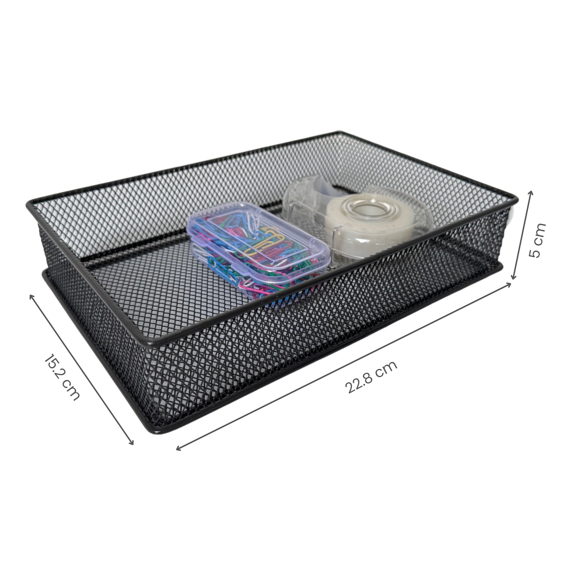 Maximise storage with our Stackable Mesh Storage Organiser, crafted from durable, powder-coated metal for a sleek and sturdy design. Its stackable structure helps optimize space, making it perfect for organizing office supplies, toiletries, kitchen essentials, and more. The open-mesh design ensures visibility and easy access, keeping your space tidy and efficient!