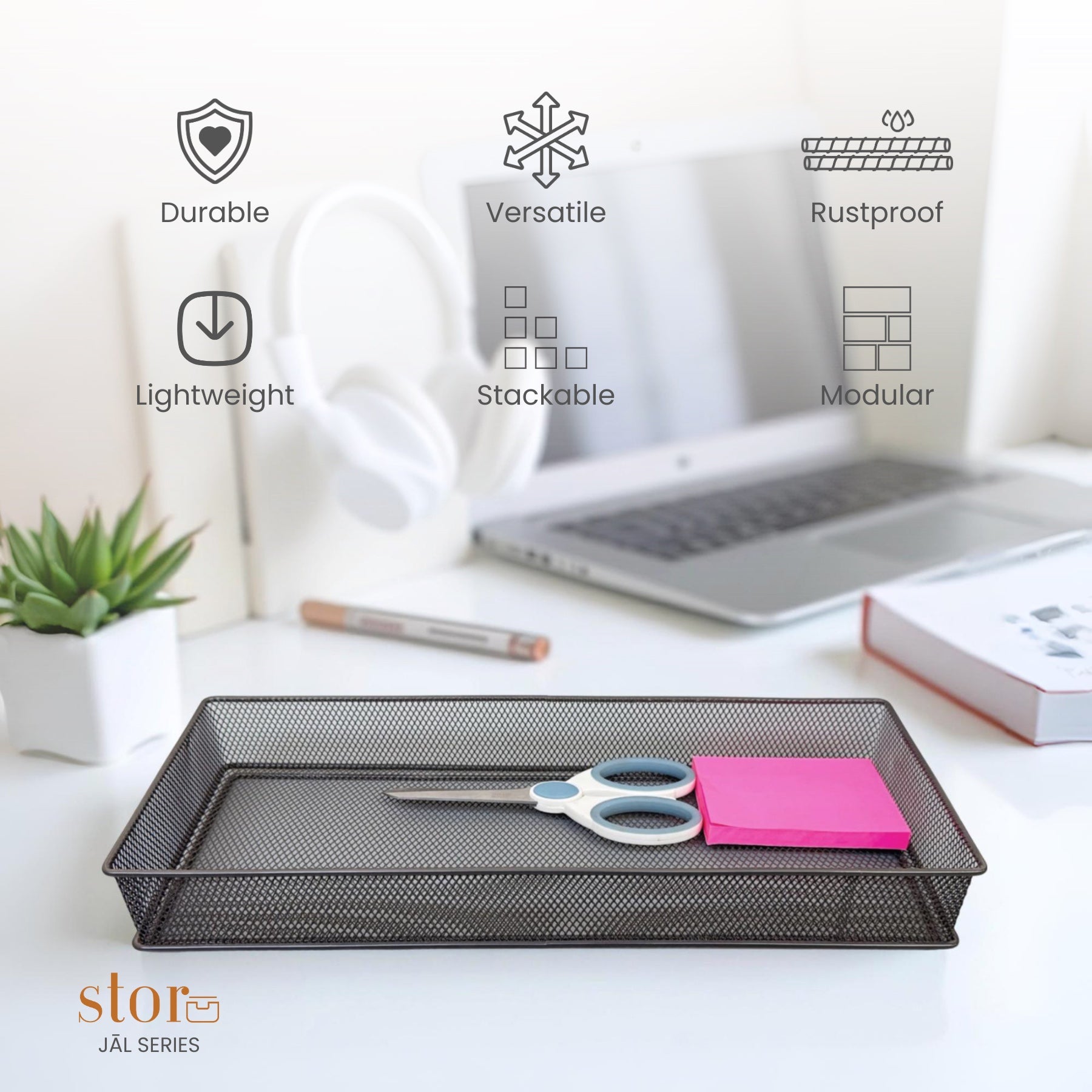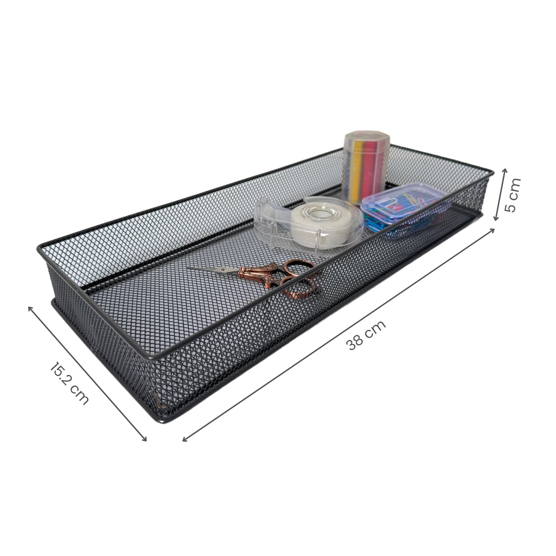 Maximise storage with our Stackable Mesh Storage Organiser, crafted from durable, powder-coated metal for a sleek and sturdy design. Its stackable structure helps optimize space, making it perfect for organizing office supplies, toiletries, kitchen essentials, and more. The open-mesh design ensures visibility and easy access, keeping your space tidy and efficient!