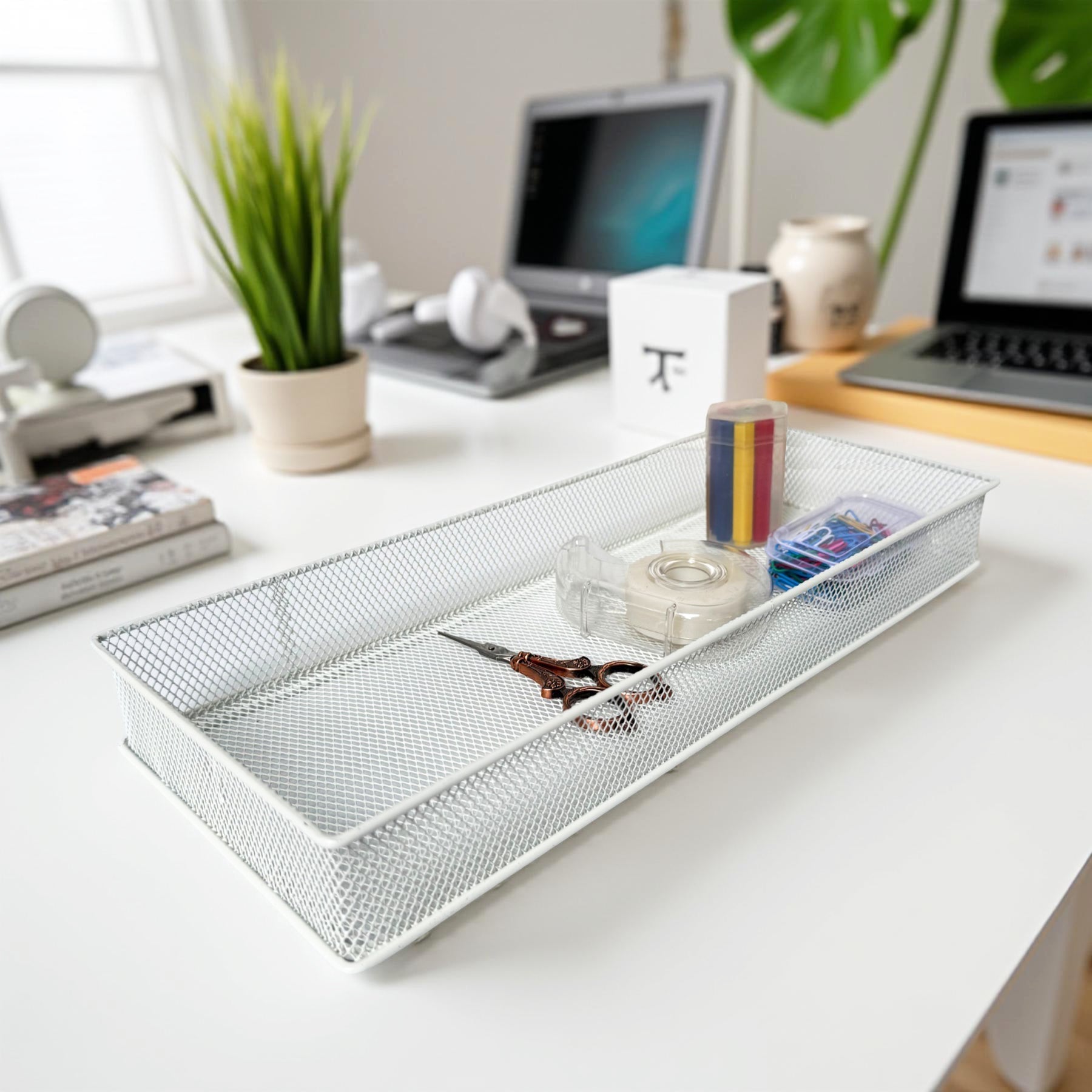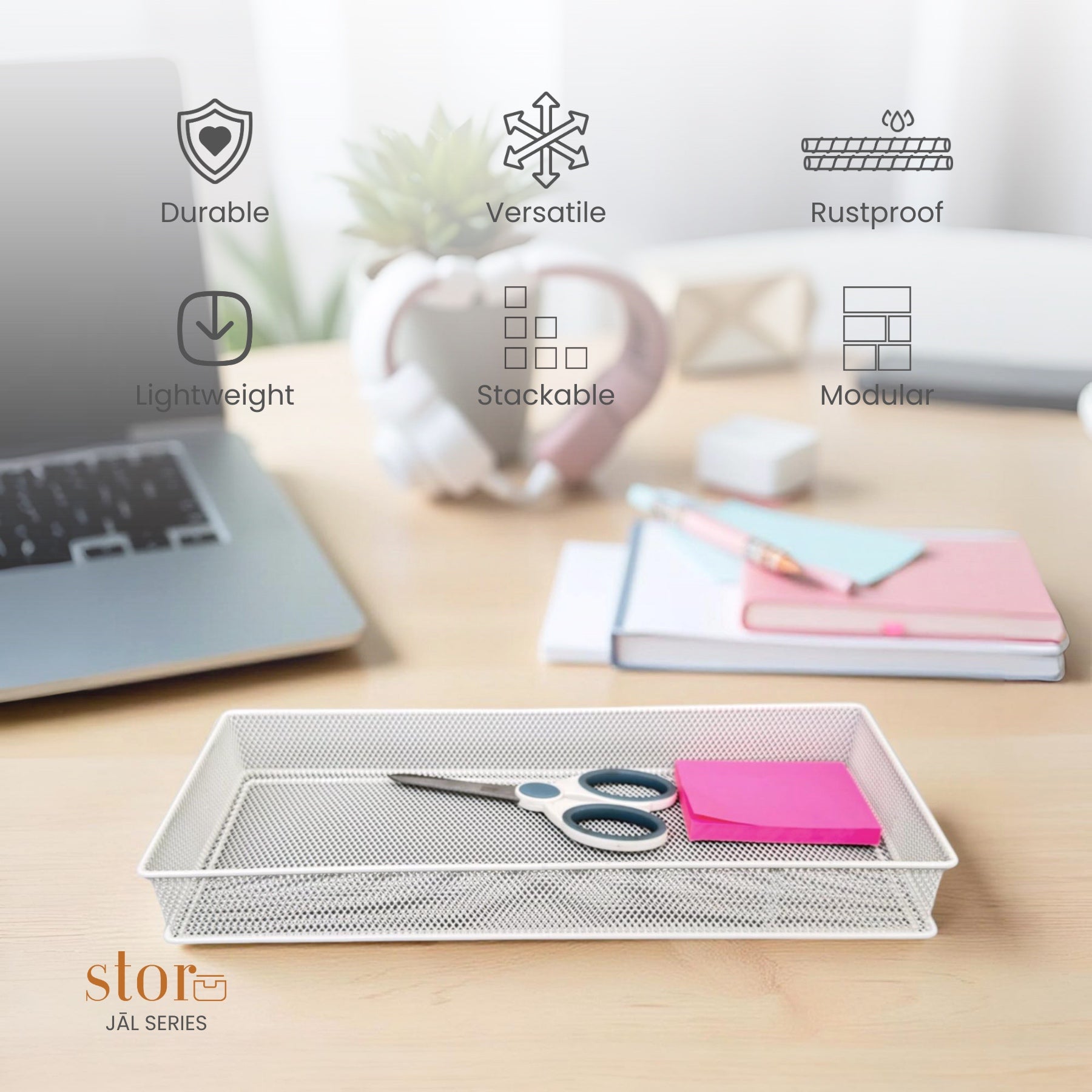 Maximise storage with our Stackable Mesh Storage Organiser, crafted from durable, powder-coated metal for a sleek and sturdy design. Its stackable structure helps optimize space, making it perfect for organizing office supplies, toiletries, kitchen essentials, and more. The open-mesh design ensures visibility and easy access, keeping your space tidy and efficient!