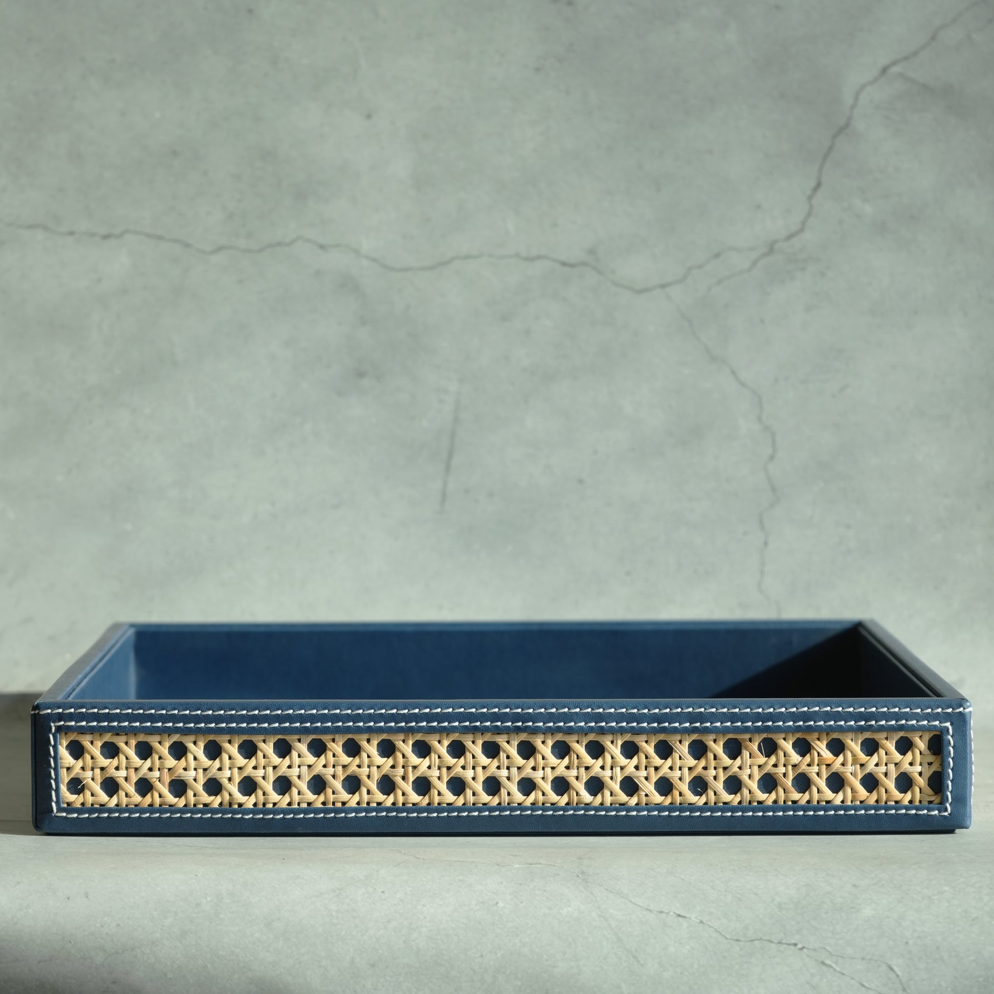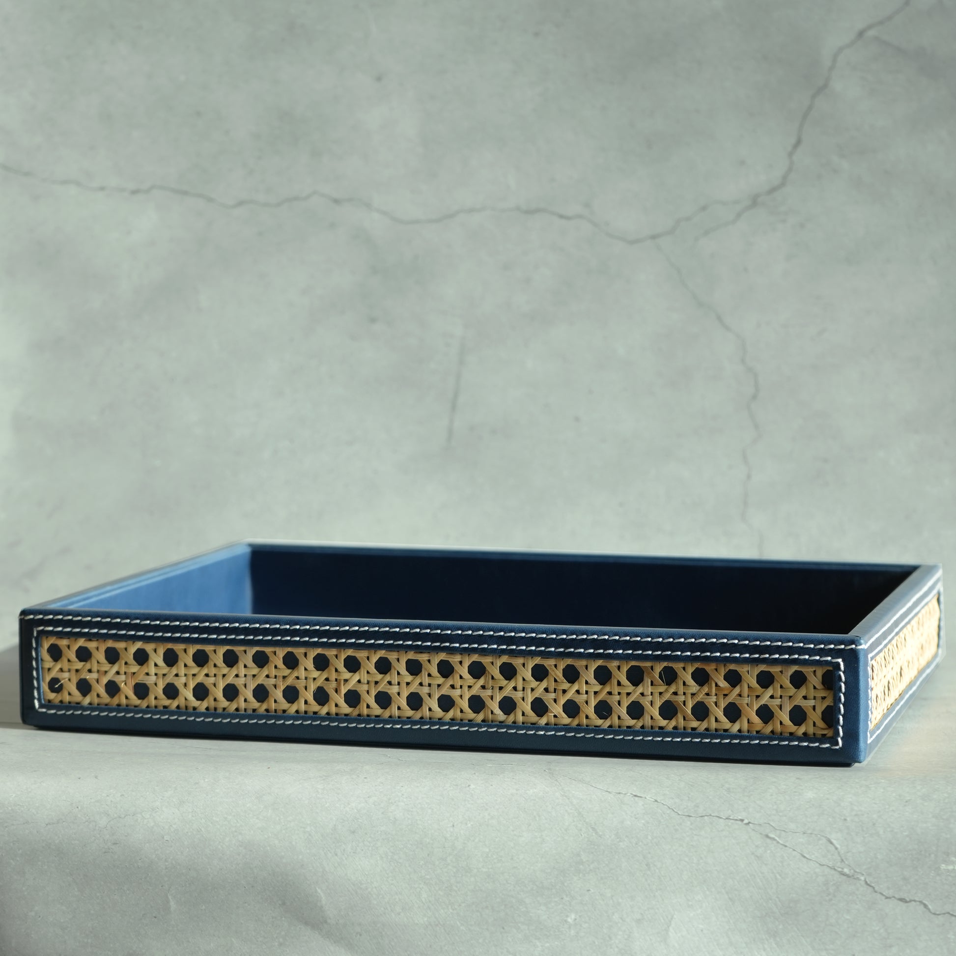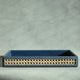 Steel Blue PU Leather & Rattan Serving Tray - Large