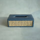 Steel Blue PU Leather & Rattan Tissue Box - Rectangle
