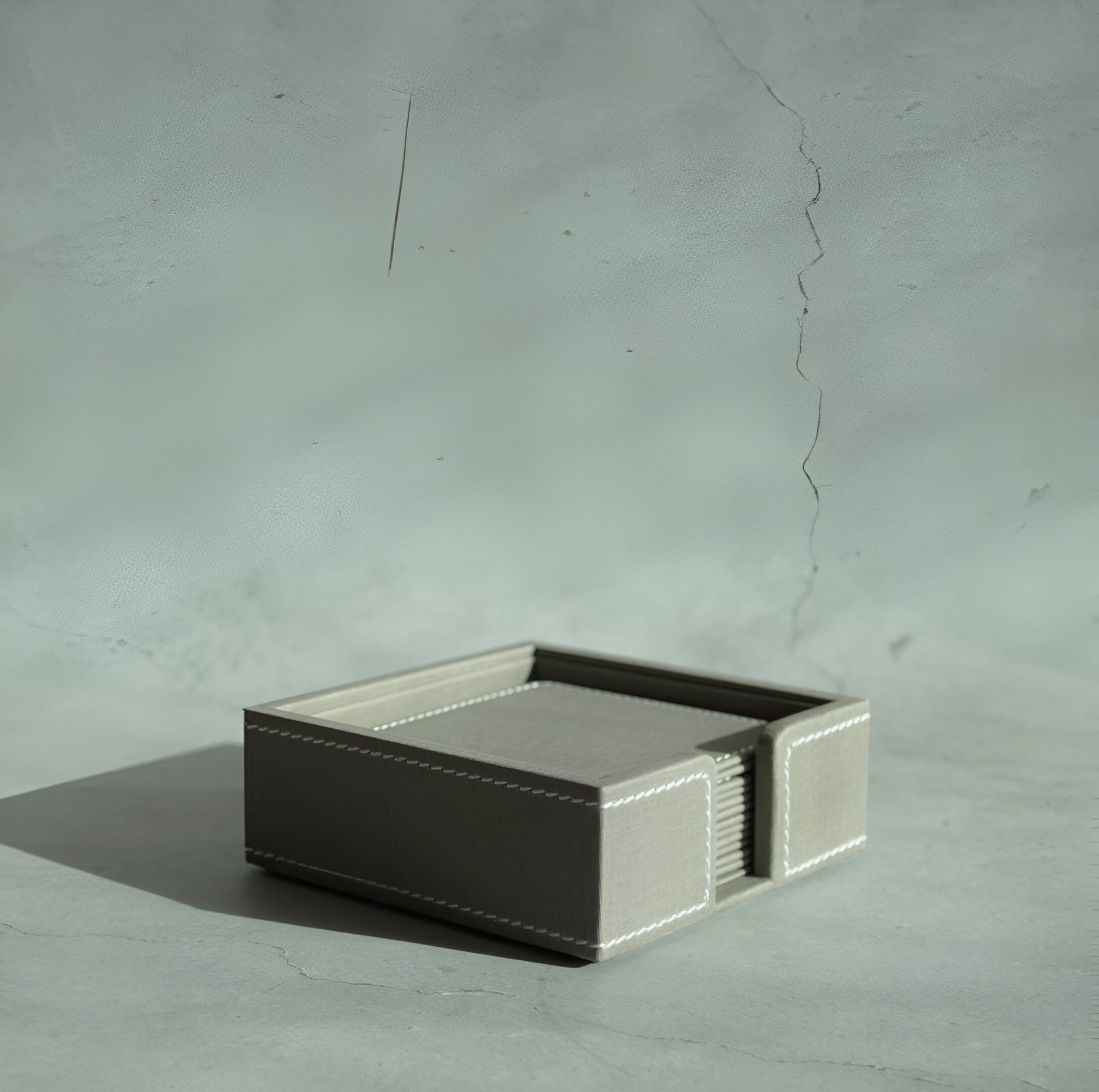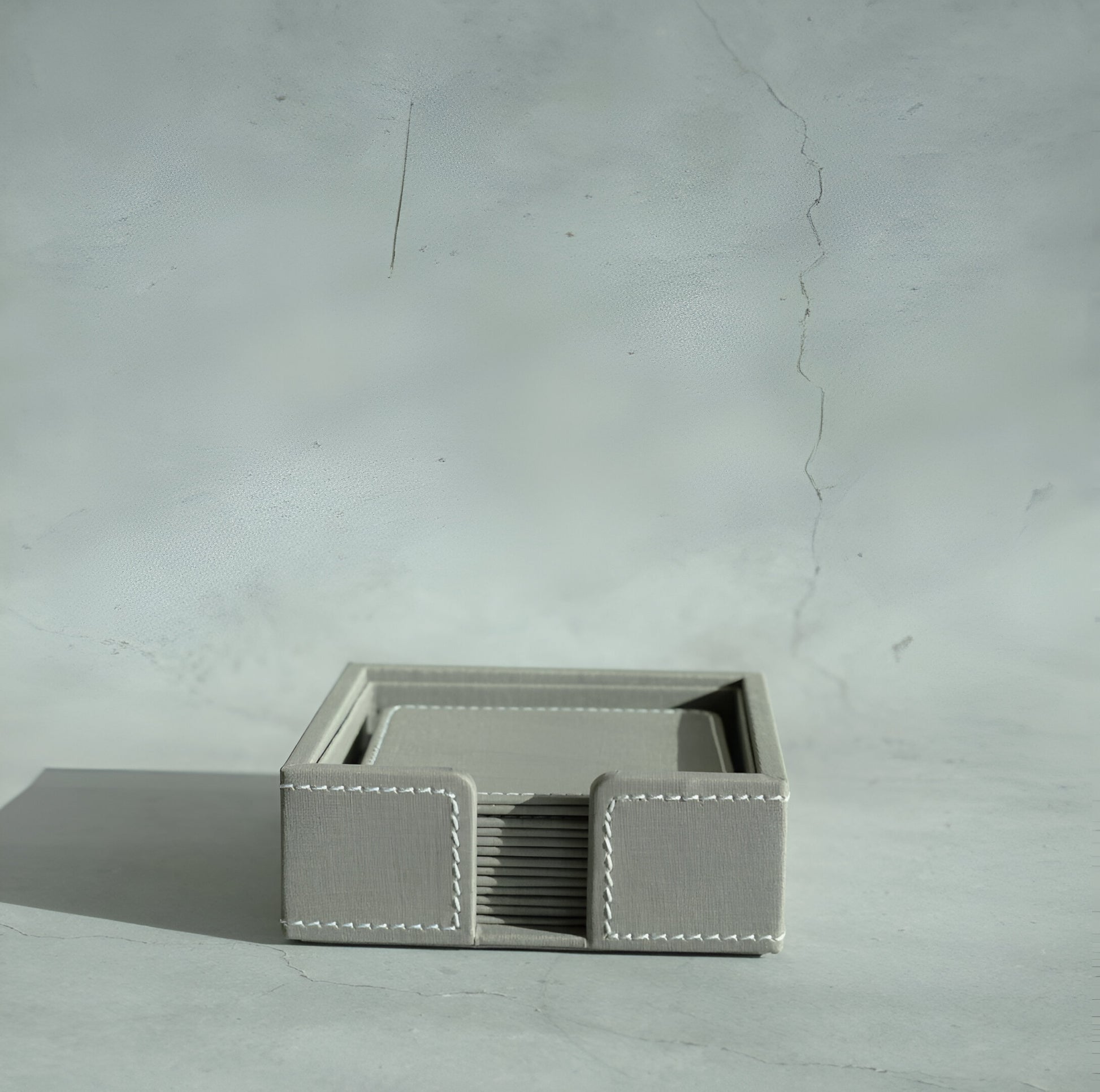 Protect your surfaces in style with this set of 6 PU Leather Coasters. With a smooth finish and minimal design, they bring a touch of sophistication to your dining or coffee table while keeping it spotless.