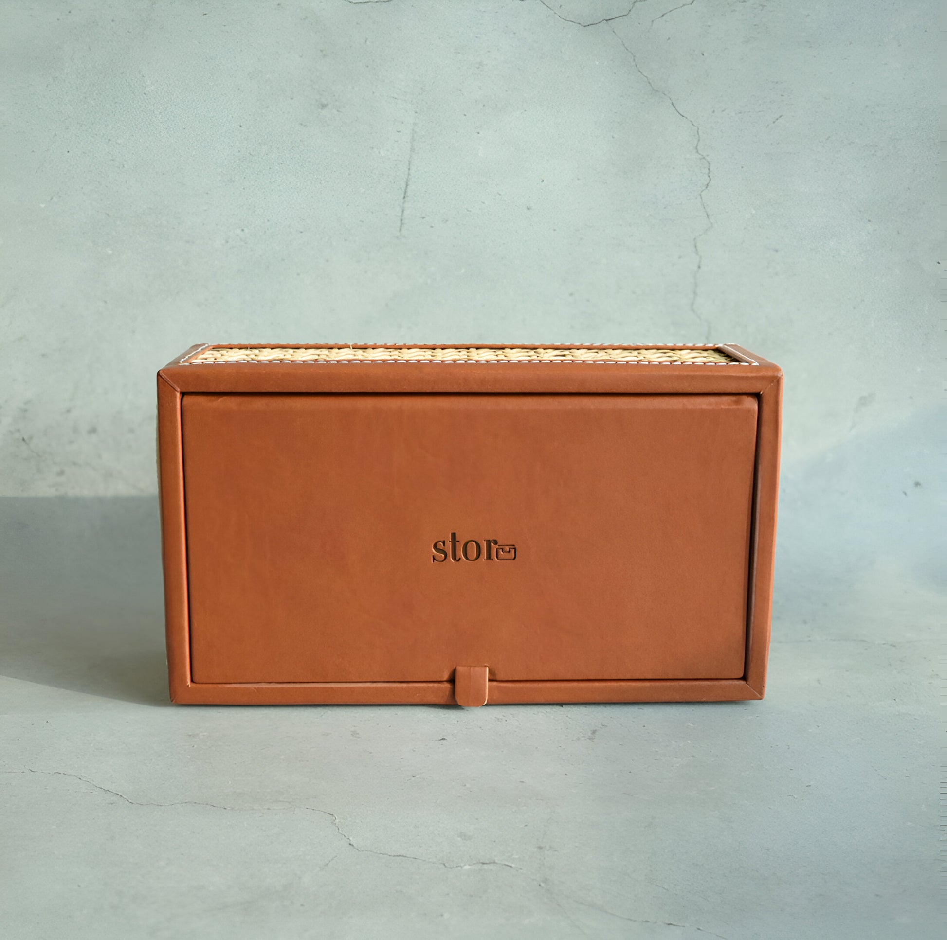 Tan Brown PU Leather & Rattan Tissue Box - Rectangle