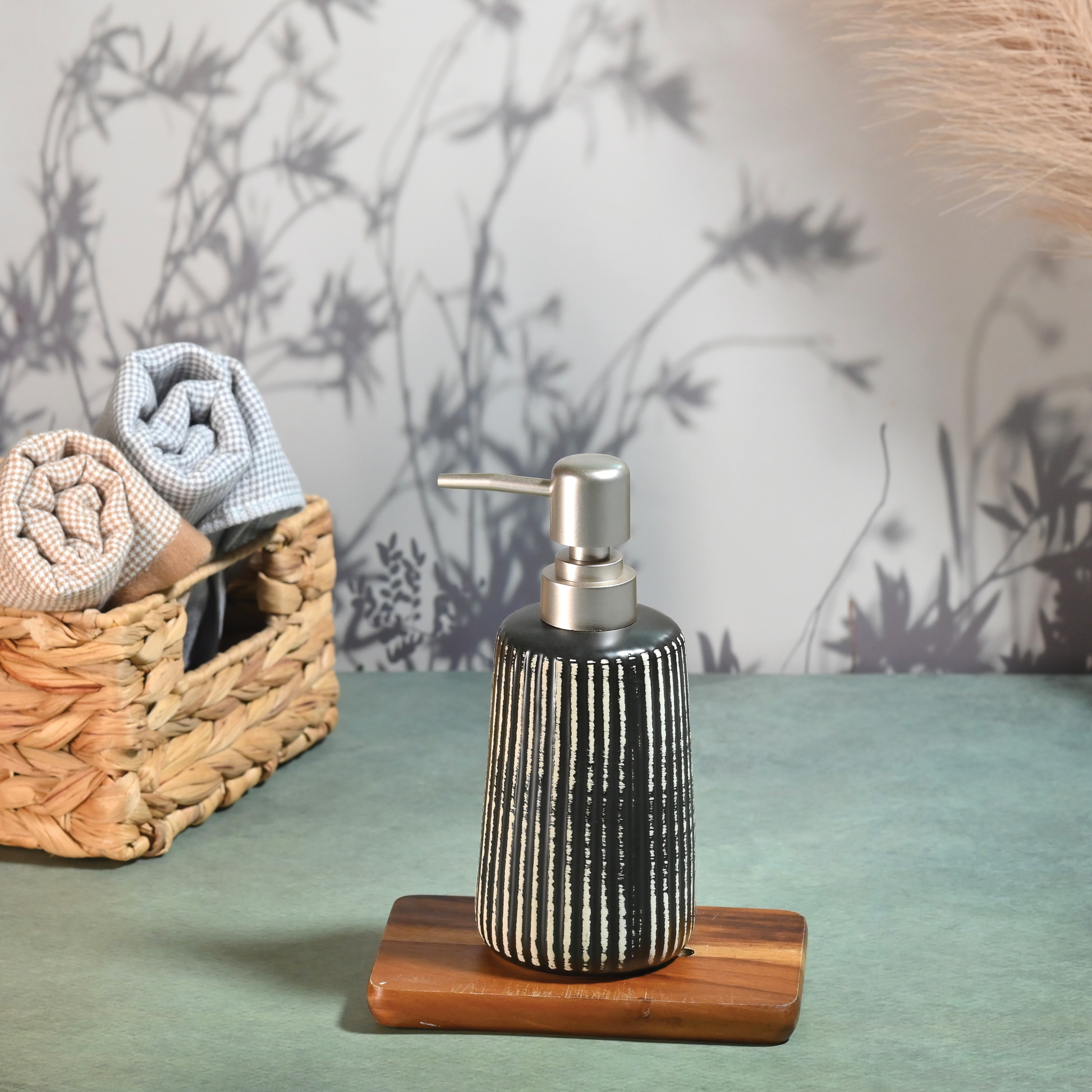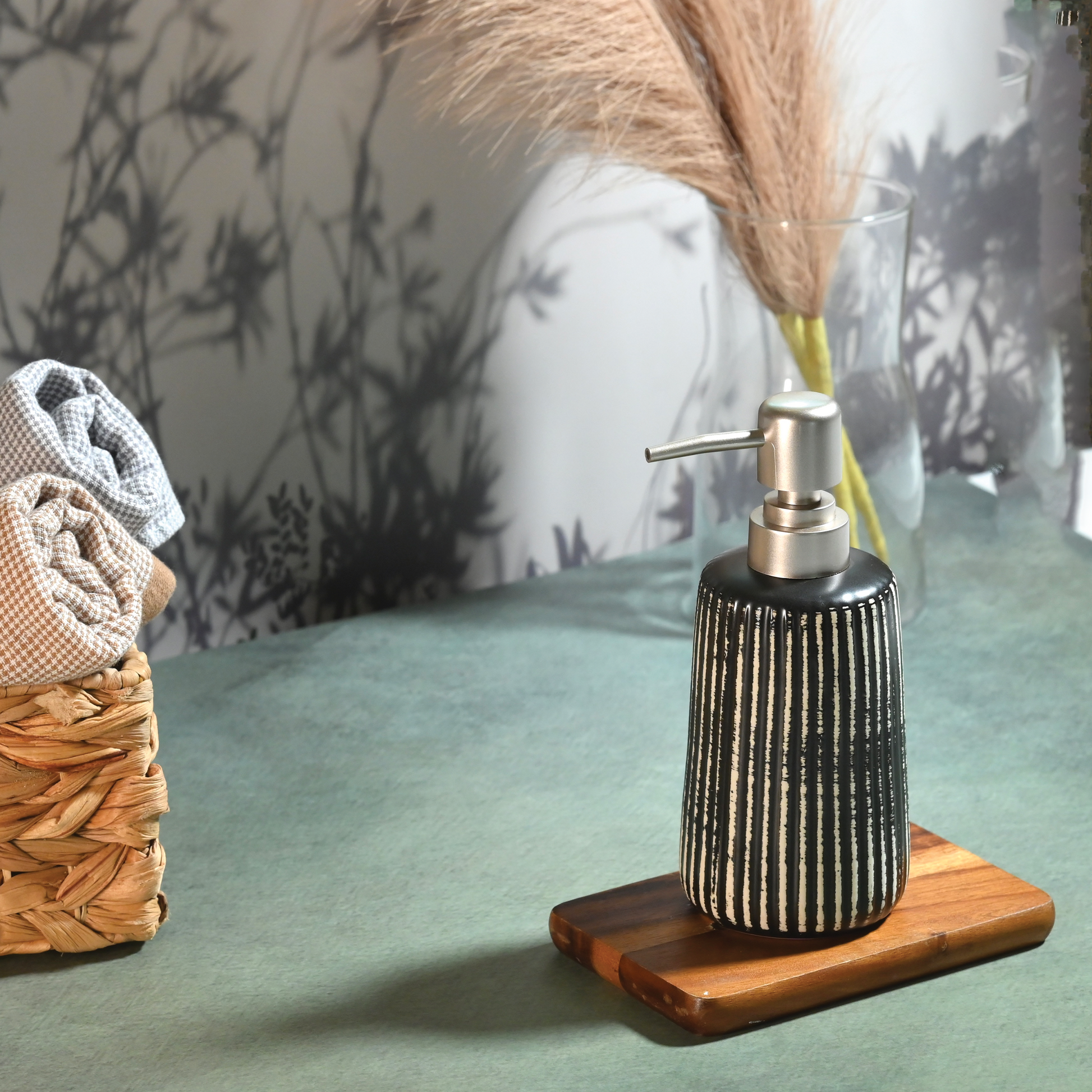 Elevate your space with our Two-Toned Textured Liquid Soap Dispenser in classic black and white. Featuring a modern textured design and a striking dual-tone finish, this dispenser adds a bold yet elegant touch to any bathroom or kitchen decor while offering practical functionality.